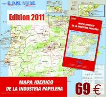 Map of all the producers of paste, paper, paperboard, corrugated cardboard and tissue, in Spain and in Portugal. 1 Mural Chart (dimension 109 X 89 cm) 1 road map (format folded 11 X 21 cm).